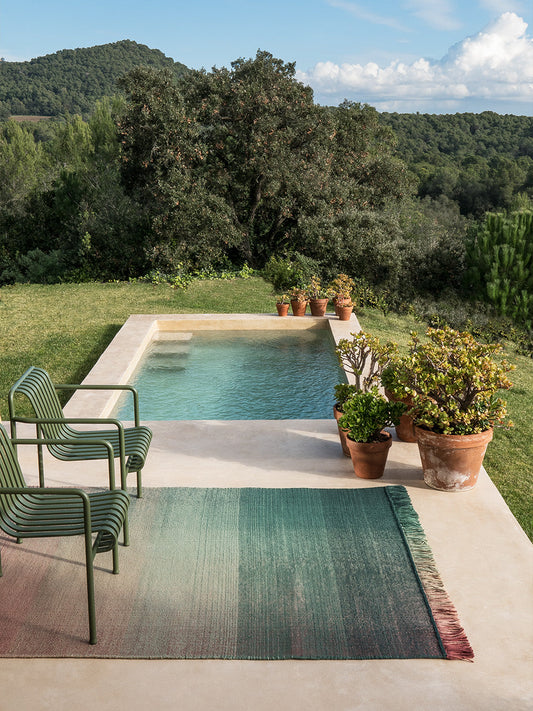 After several R&D efforts, we improve the characteristics of our outdoor collections by improving the dyes of our PET fibers. From now on, our rugs and outdoor accessories have maximum solar resistance without losing intensity, tone or shine.