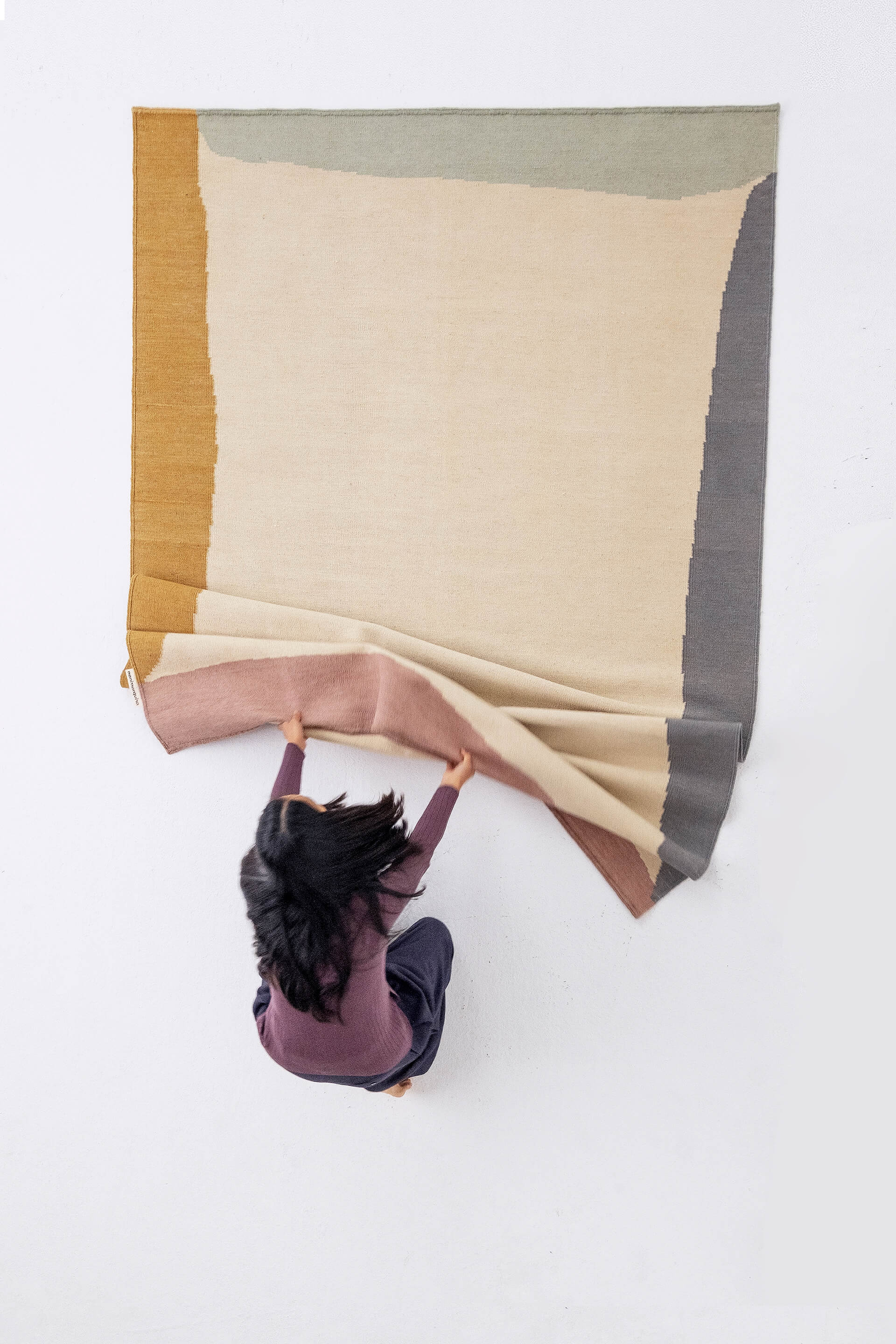Tones has been developed in 2 techniques that provide different finishes and sensations. The Hand-tufted technique allows you to literally transfer the work of Clàudia Valsells, being the closest thing to creating from a blank canvas. However, the ancestral Kilim technique provides an aged and irregularly woven appearance given by the use of Afghan wool, which gives it a new perception.