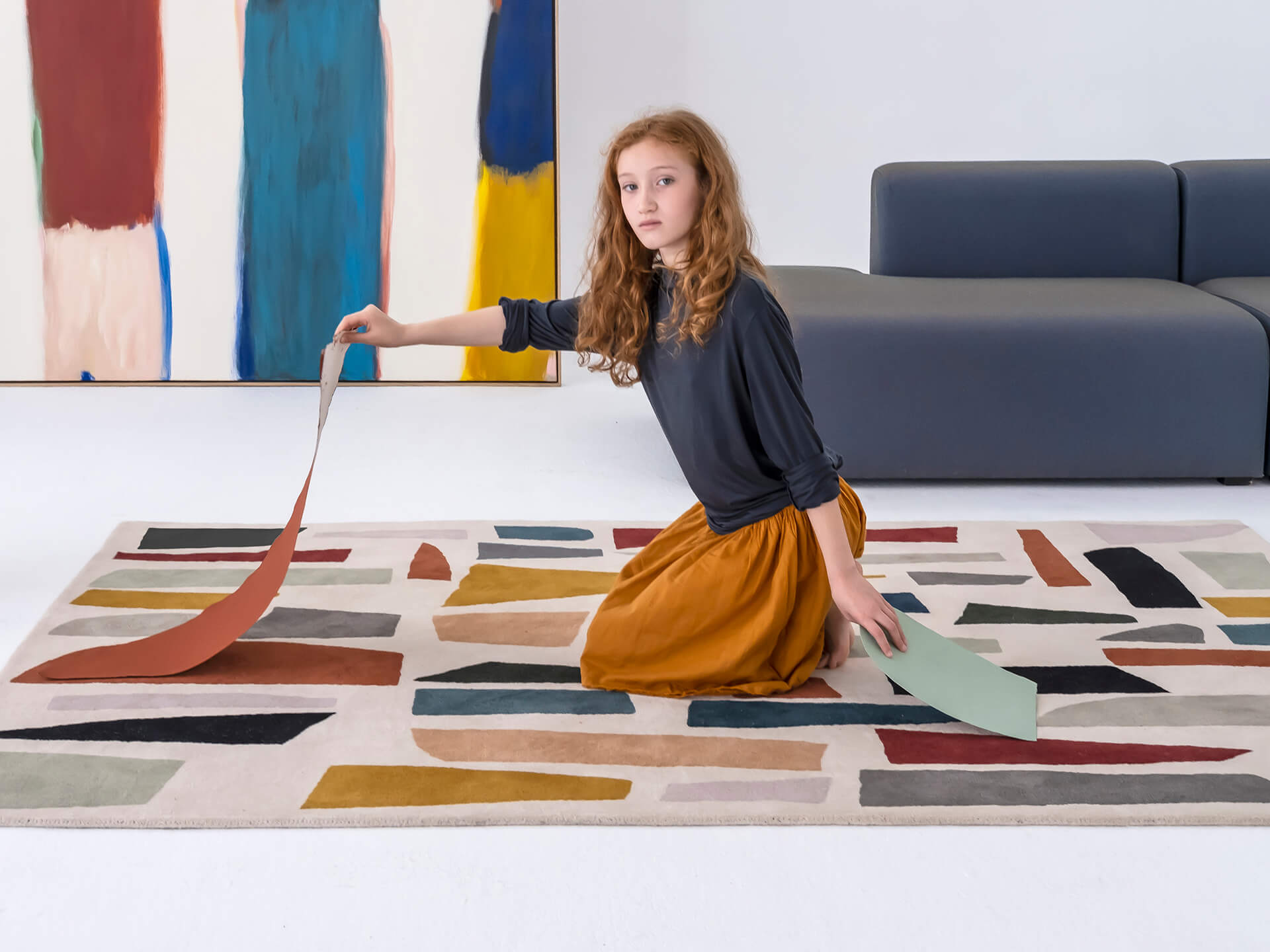 The Tones collection, designed by artist Claudia Valsells, is a contemporary revision of the traditional rug through color and simplicity of shapes.