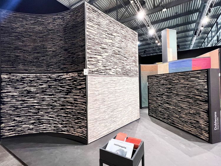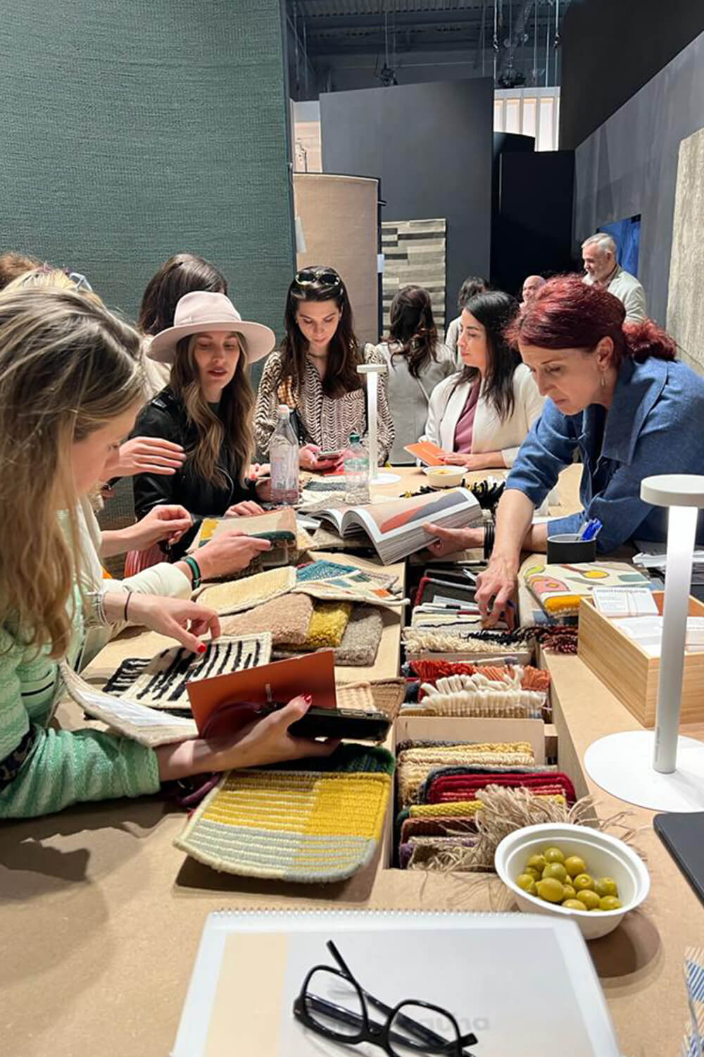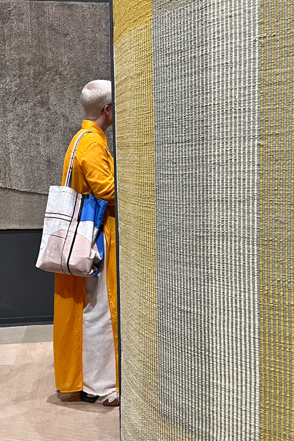We designed our stand with the intention of going further. Allowing attendees to truly connect with our collections. The space had different levels and volumes that were carefully arranged to create an immersive experience for our visitors, encouraging them to explore and interact with our rugs. Being able to experiment with the textures and materials that give life to our designs.
