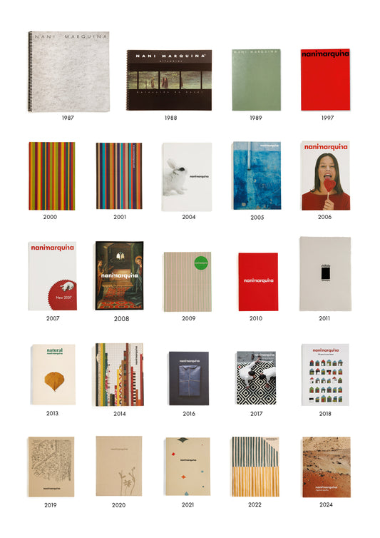 Nani designed the very first catalogue by hand, pouring her vision into every detail. Later, Xavier Bas gave shape to the brand’s graphic language and introduced the logo we still carry with pride, while Albert Font became the brand’s lead photographer. The arrival of Carlota Marquina brought a new depth to our art direction: a natural evolution rooted in emotion, sensibility, and identity. This gallery stands as a testament to how, year after year, we reflect who we are through the design of our catalogues.ands as a testament to how, year after year, we reflect who we are through the design of our catalogues.