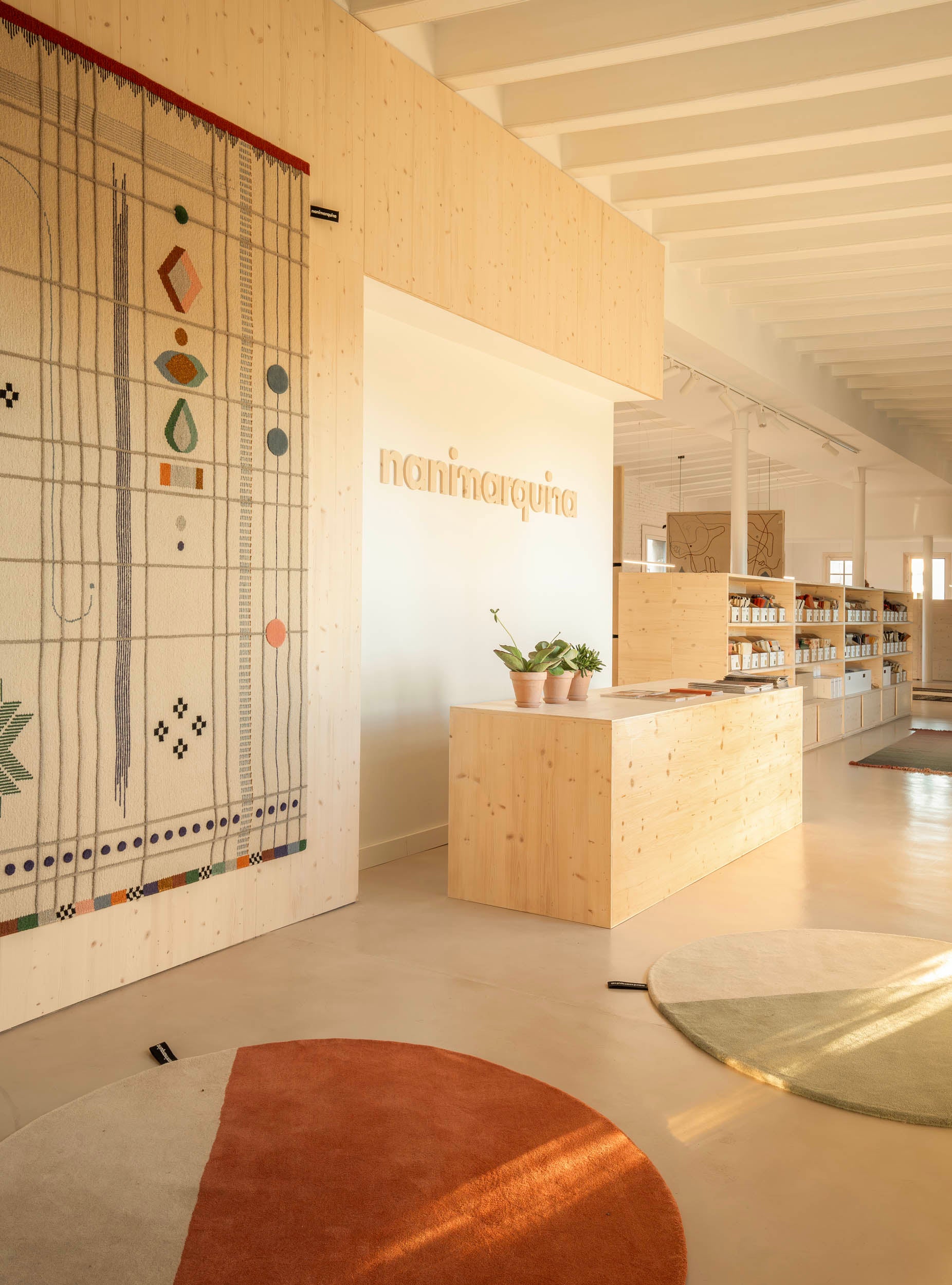 For the furniture, brands with a design philosophy aligned with that of nanimarquina were chosen, along with a strong commitment to sustainability: Santa & Cole lamps, made from environmentally friendly and locally sourced materials, and Vitra office chairs, fully recyclable and ergonomic, combining the functionality and comfort sought for the project.