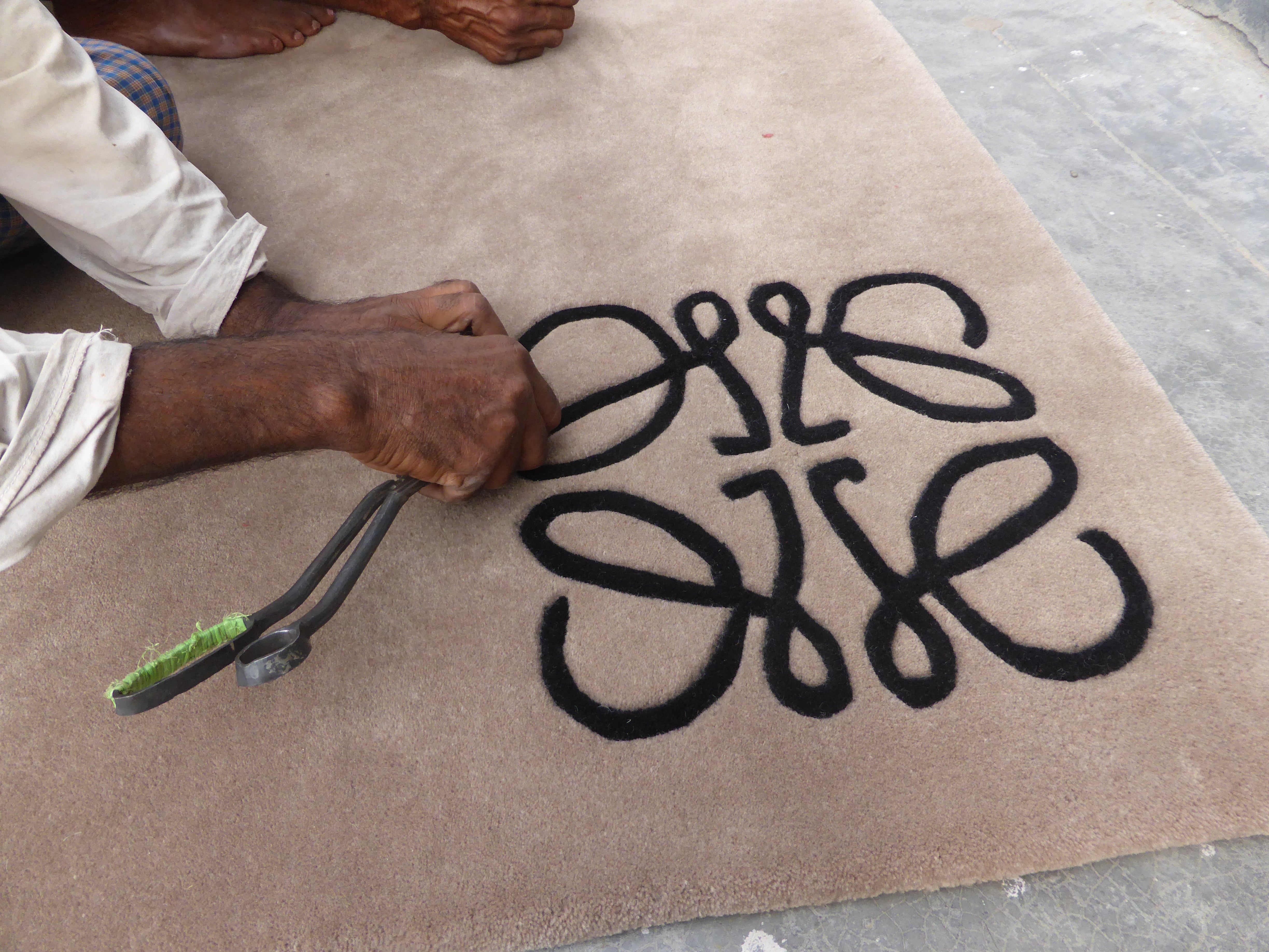 Loewe's interior design team commissioned the creation and personalization of high-quality rugs with the brand's logo.