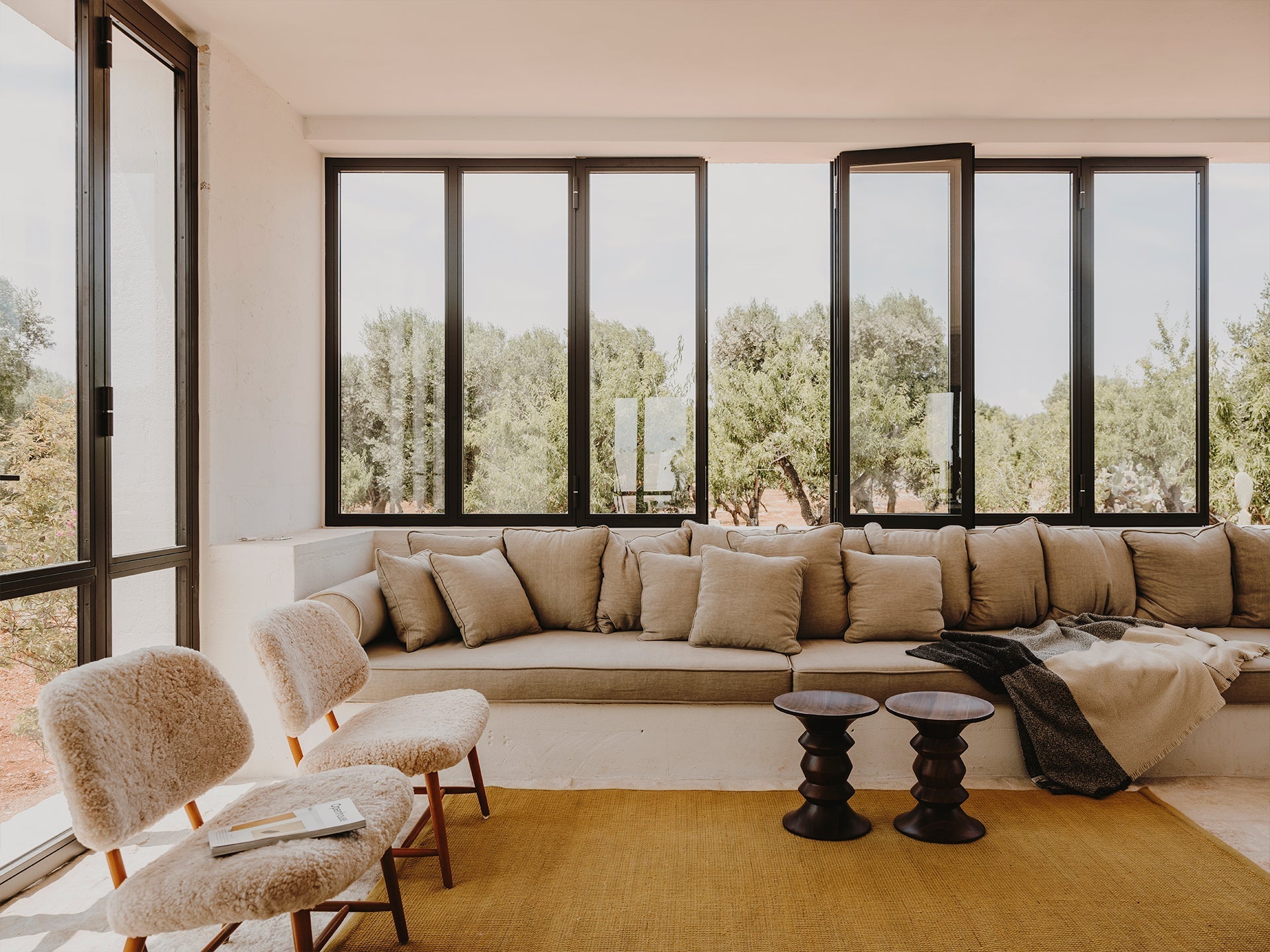Andrew Trotter's architecture, interior design and landscaping studio has designed the residence in the form of a complex that brings together constructions inspired by the traditional cubic houses found in Puglia, to ensure that it completely adapts to its surroundings.