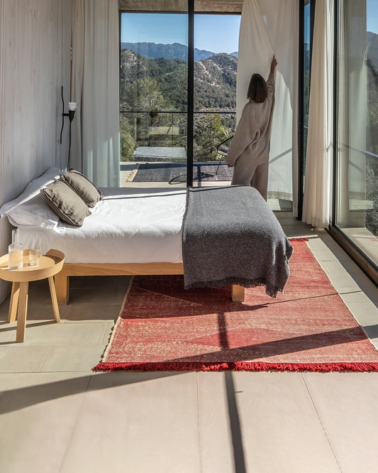 A rug is a great companion in bedrooms, where maximum comfort is usually sought. It can be placed at the foot of the bed taking advantage of the warmth it offers upon entering and leaving the room; smaller sizes can be placed on both sides of the bed or the rug can even be used as a decorative element.