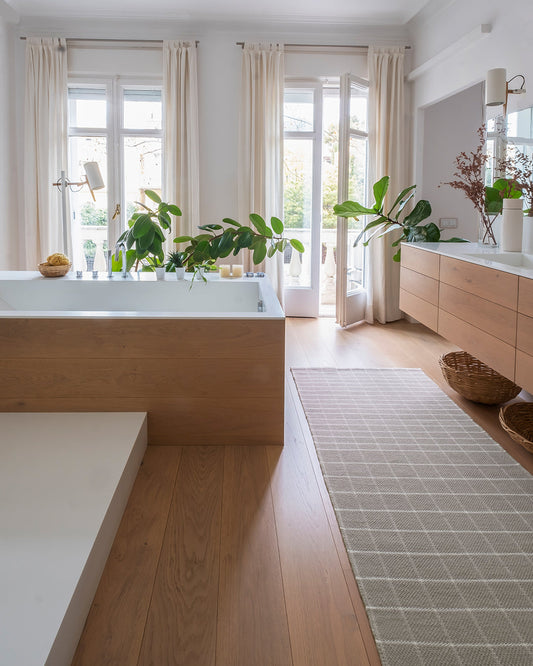 Although less frequent, a rug can complete bathroom areas very well. Providing comfort in certain areas, separating the water area from the rest or indicating the entrance to a new room.
