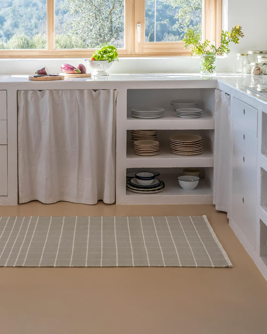 Long, narrow rugs, commonly labelled runners, work very well in kitchens. One example would be to separate food preparation and eating areas. A rug can also be placed to indicate a transition to another room.