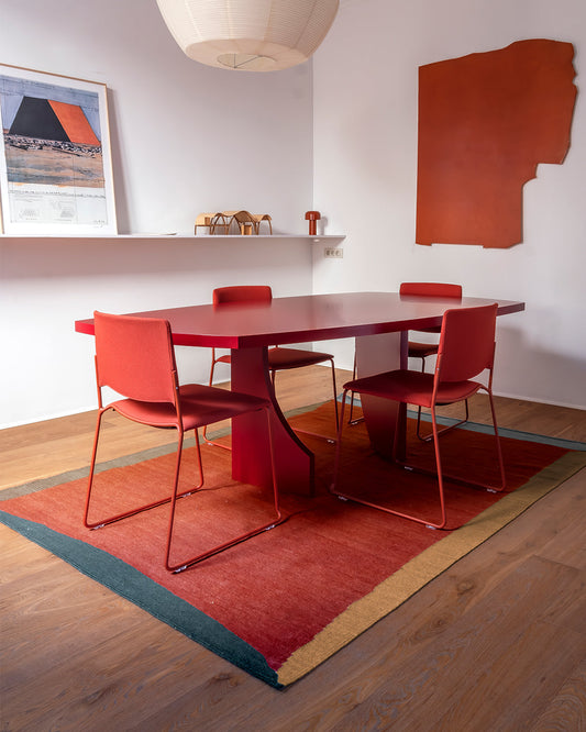 In dining rooms, a rug under the table is a great solution to improve the acoustics of the space, as well as providing comfort and personality.