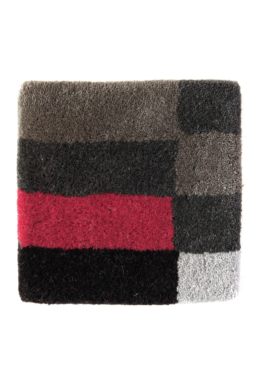 Defined by an imperfect circular outline, Redonda 1 combines black and reddish shades and comes in two sizes to be placed alone or in together, creating different areas in a single space. A round rug made using the hand-tufted technique.