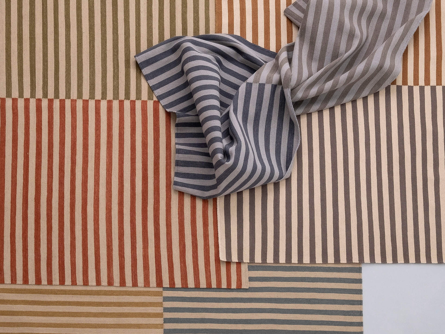 The Ceras collection is the result of a comprehensive study of color by hand-tracing with crayons. An intuitive and instinctive process, a quest for balance using three colors and something as simple as drawing stripes in repetition. A durable and hard-wearing yet very light indoor rug.