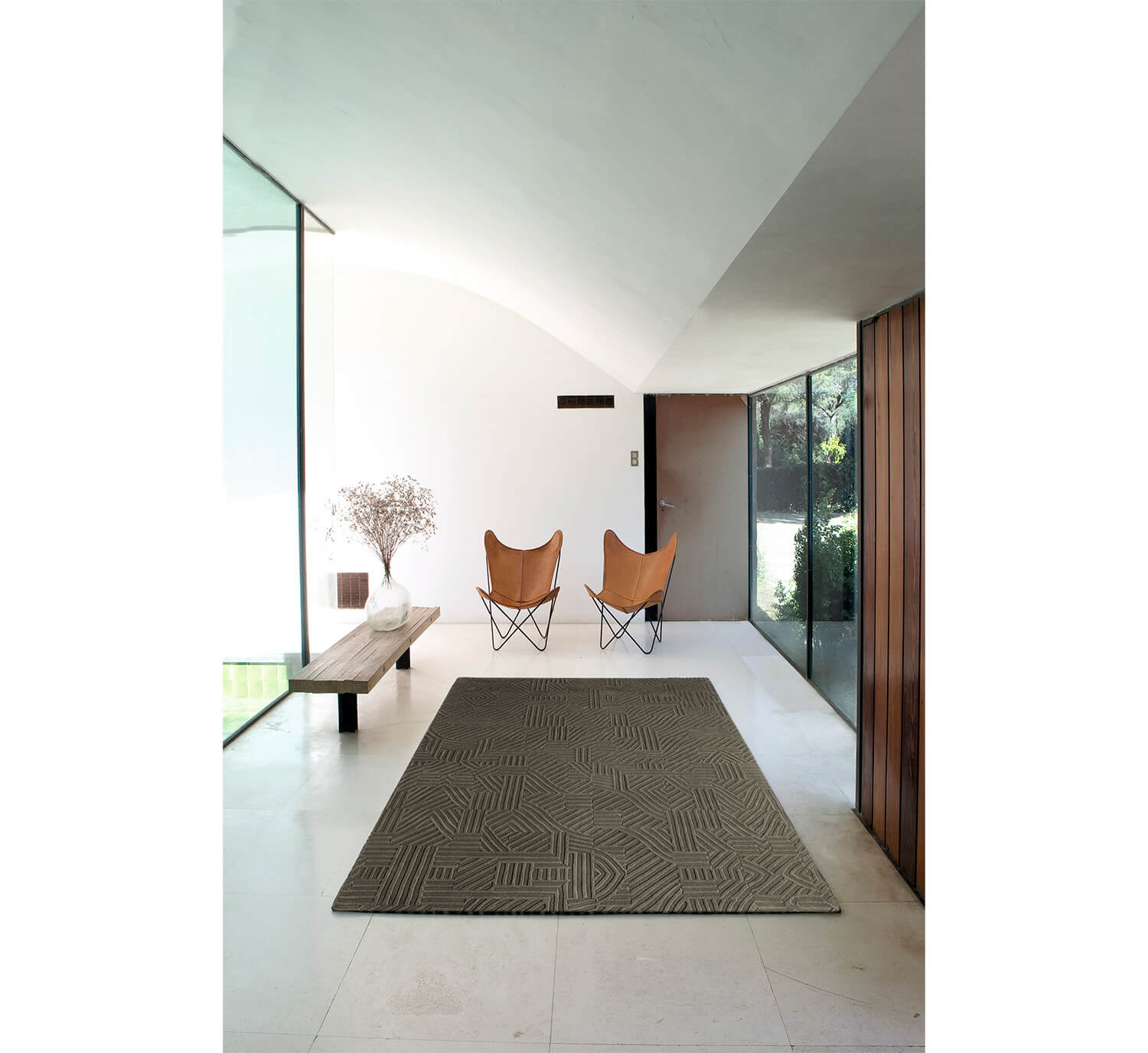 This relief rug, designed by the renowned American illustrator and designer Milton Glaser, is composed of a network of lines, shapes and shadows.