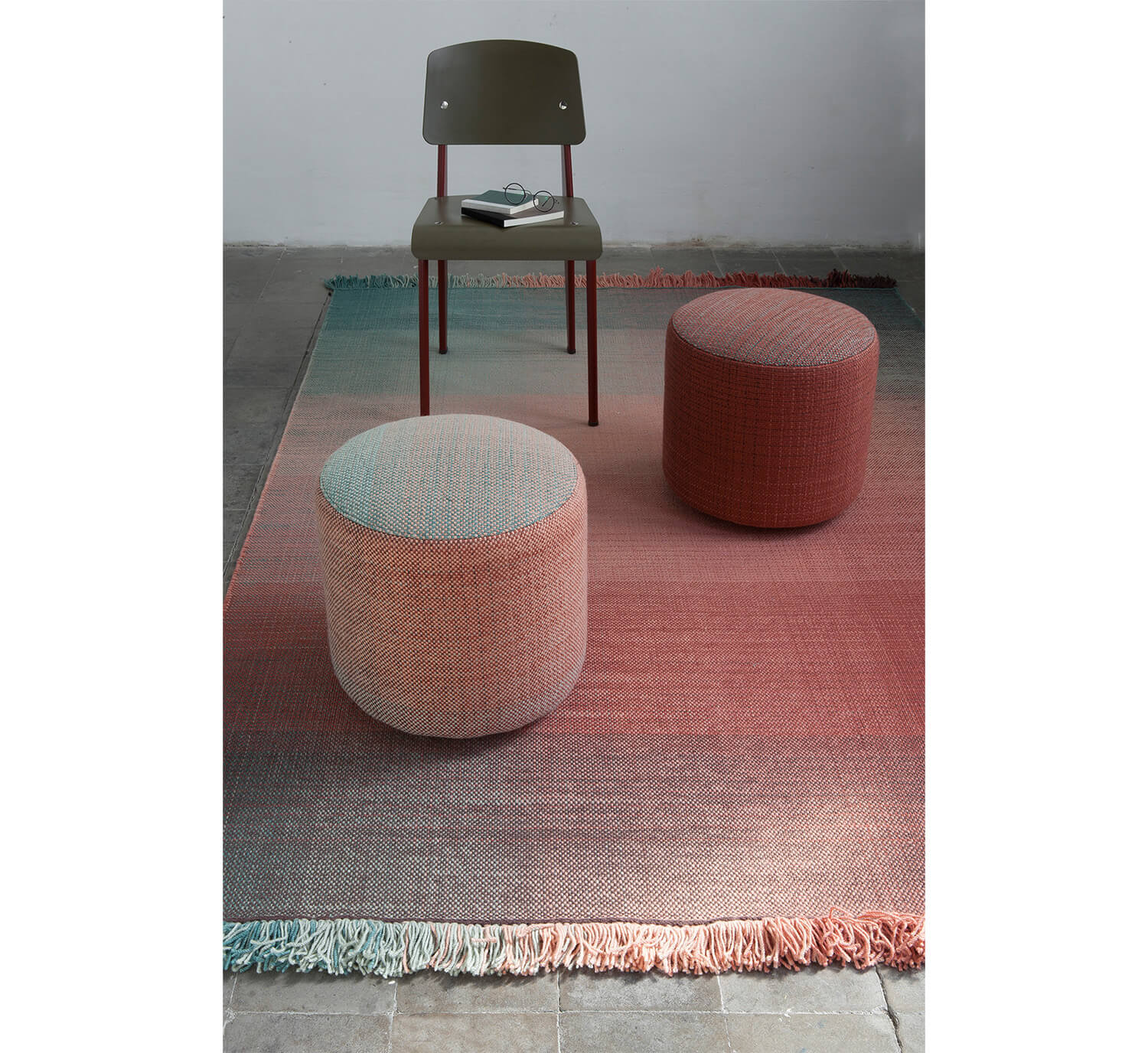 The collection of Shade poufs is born to complement one of our most succesful collections. And as the original rug models are inspired by magical moments in nature where colors melt and speak for themselves. Shade palettes achieve an intricate gradient that leaves no one indifferent.