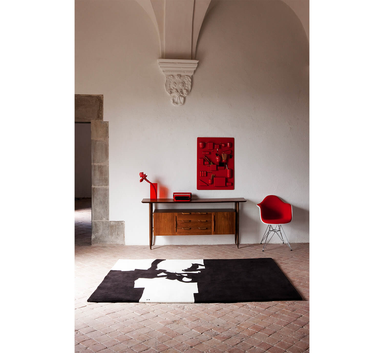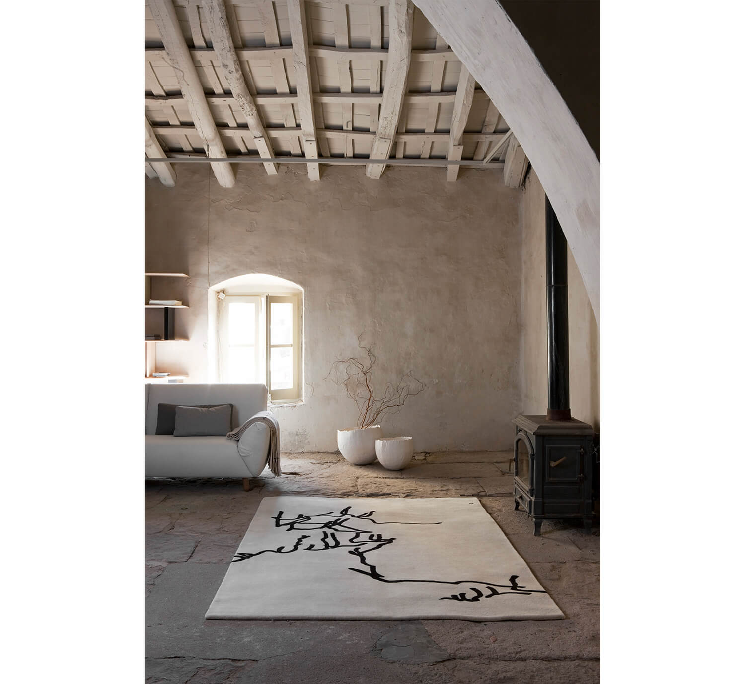 This tension was our prime focus in transforming hiswork into a rug. Playing with ancestral techniques, New Zealand wool fiber and different heights, the suspension that Chillida was looking for has been reflected.